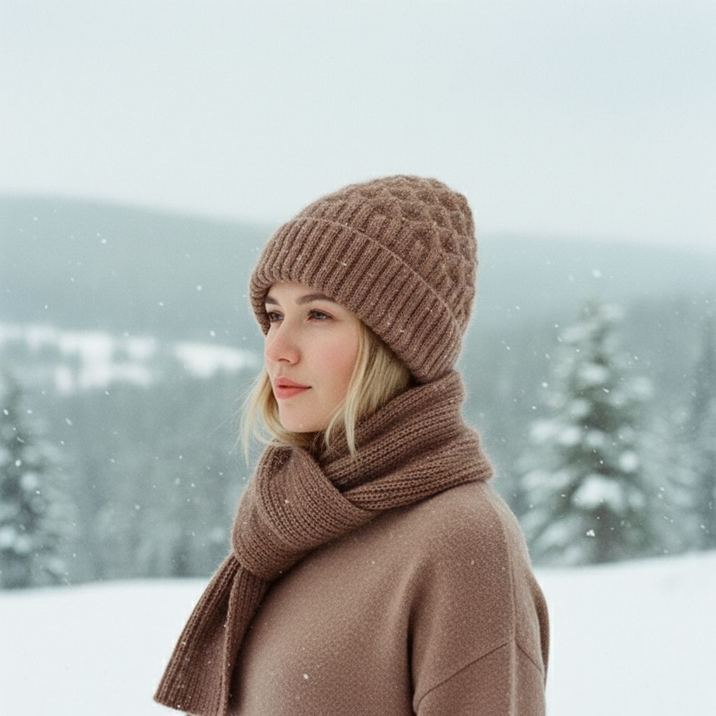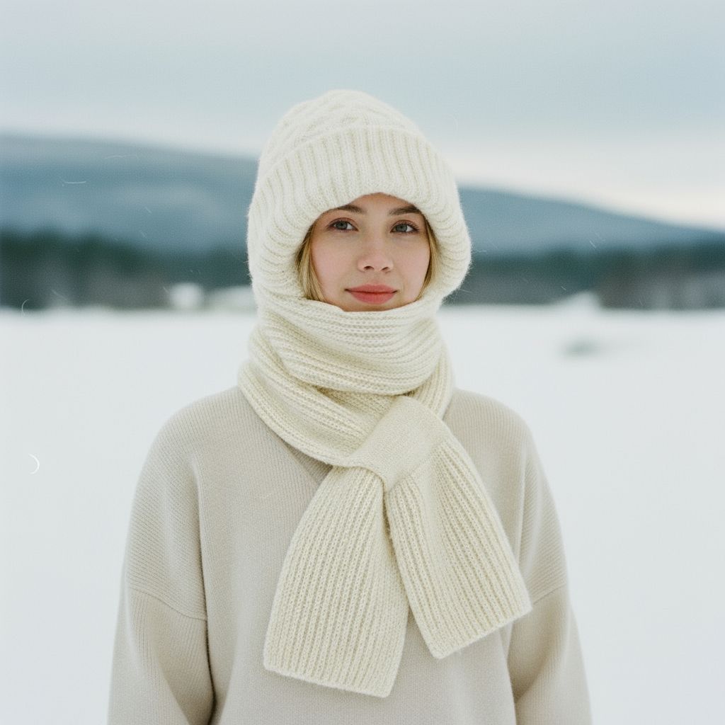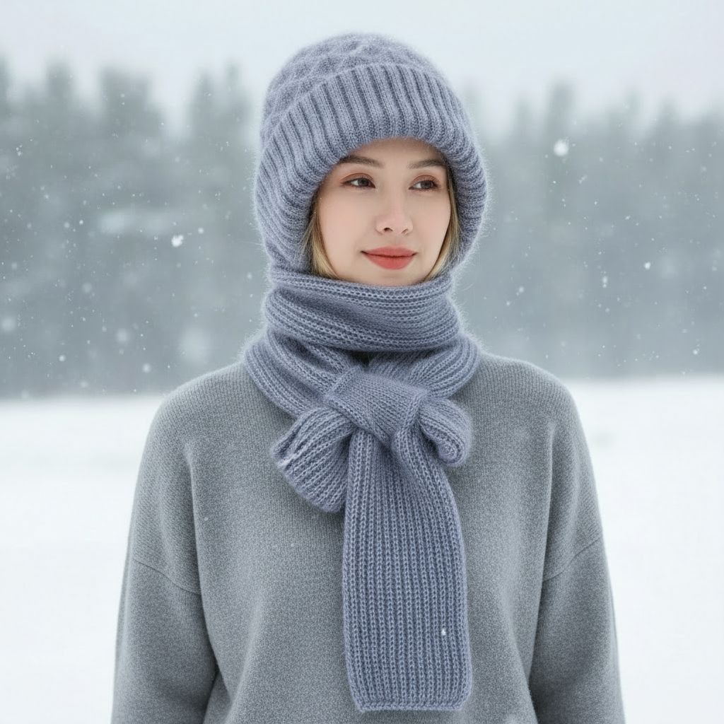 ✅Stilig og allsidig design: Dette alt-i-ett-tilbehøret kombinerer en strikket lue og et skjerf i ett og gir ethvert vinterantrekk et chic preg. Det klassiske mønsteret og det myke stoffet gjør det perfekt for både uformelle utflukter og formelle anledninger.