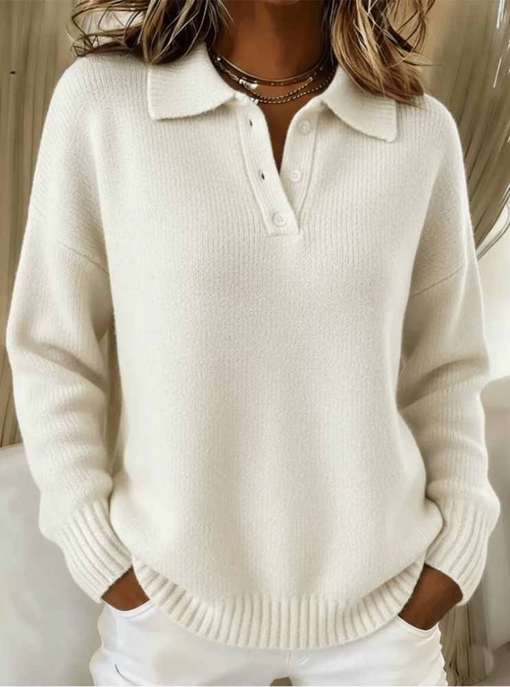 Denne genseren er en kombinasjon av tidløs stil og moderne, trendy design. Den imponerer med mykhet, omfavner med varme og er så behagelig mot huden at du ikke vil ta den av deg. Lett ribbestrikkede detaljer og kragen gir den klasse, og dens delikate struktur gjør at den ser ekstra stilig ut i enhver styling.